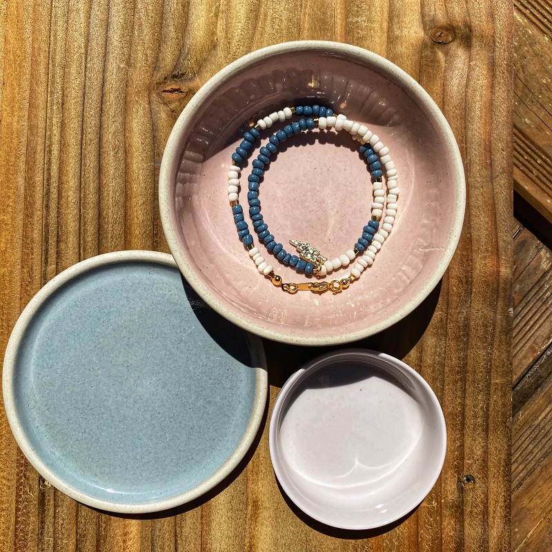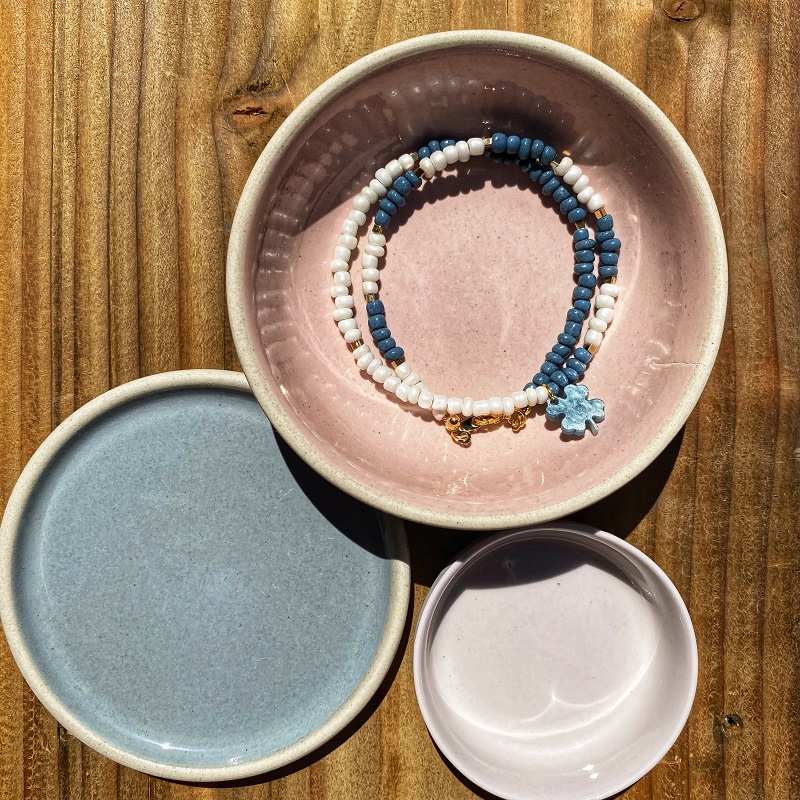 Dans le même esprit que les bracelets multicolores LAGOON, adoptez les colliers courts en perles de rocailles Miyuki, perles dorées à l’or fin et pendentifs brillants. Ils sont faciles à assortir et faciles à porter. Les couleurs proposées vous permettront de les assortir avec toutes vos tenues et avec beaucoup d’autres bijoux. Vive les accumulations !